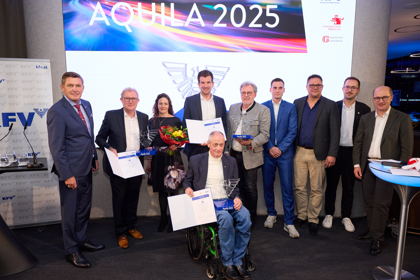 Bei der Preisverleihung in Wien wurde das Projekt in der Kategorie „Gemeinden bis 10.000 Einwohner“ mit dem 1. Platz ausgezeichnet – überreicht von Bundesminister Peter Hanke im Beisein von KFV-Direktor Christian Schimanofsky, Gemeindebund-Präsident Johannes Pressl, Michael Kögl (Städtebund), Franz Gausterer (NÖ.Regional) sowie zahlreichen Vertreter:innen aus Politik und Wirtschaft.