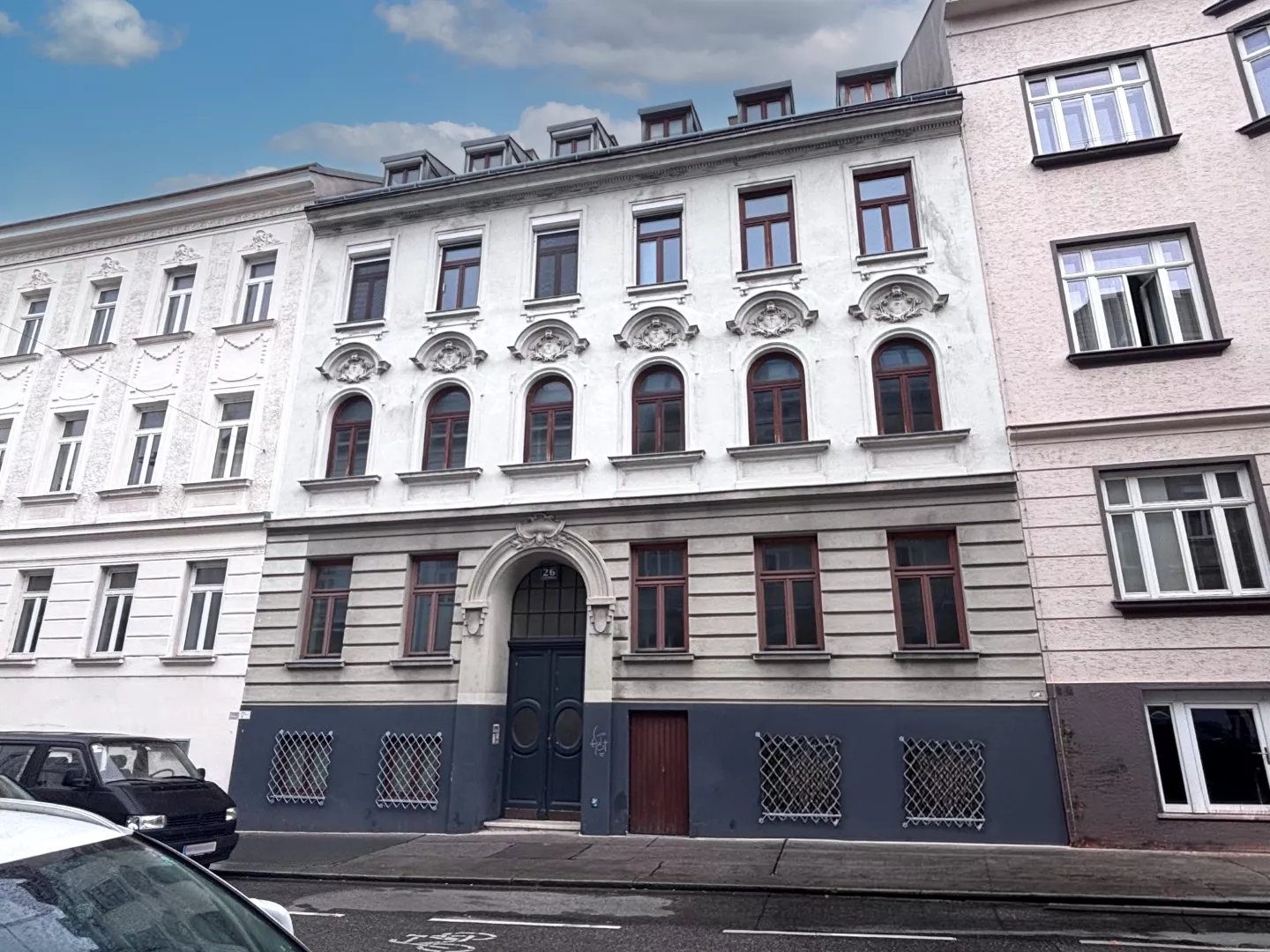 Generalsanierung und Umbau des fünfgeschoßigen Gründerzeitwohnhauses, Neunutzung des Souterrains als Gartengeschoß, Einbau einer Aufzugsanlage sowie Heizungsumrüstung von Gas auf Wärmepumpe.