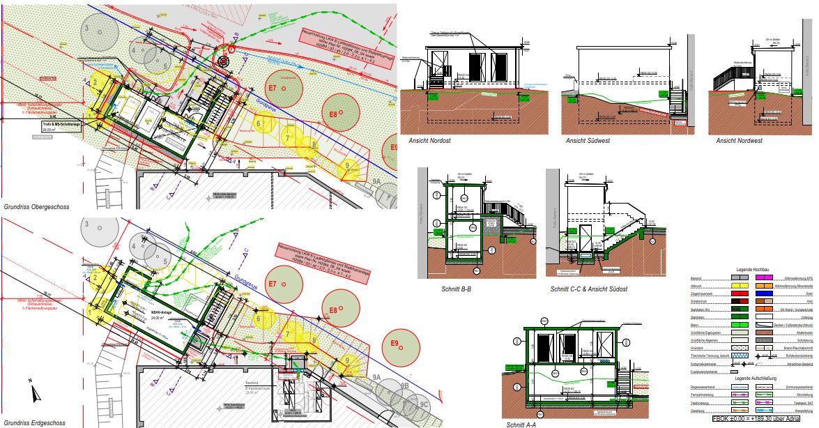 Zur Verbreiterung der Stellplatzanlage wurde entlang der südöstlichen Stellplätze auf eine Länge von ca. 43 m eine Stützwand zur Böschungssicherung projektiert.
