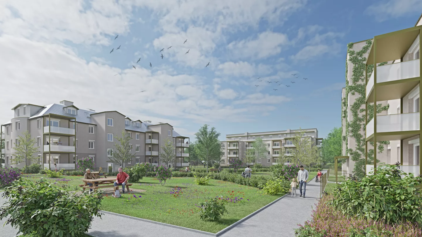 Bestandssanierung und Umbau von 7 Wohngebäuden sowie Neuerrichtung eines zusätzlichen Wohngebäudes. 120 Wohnungen werden thermisch und haustechnisch saniert, 20 Wohnungen werden durch Aufstockung von 5 Bestandsgebäuden zusätzlich geschaffen und 24 Neubauwohnungen komplettieren die Wohnsiedlung mit schlussendlich insgesamt 164 Wohnungen.