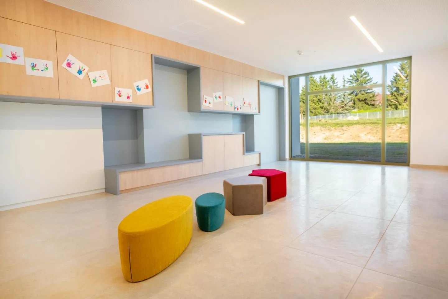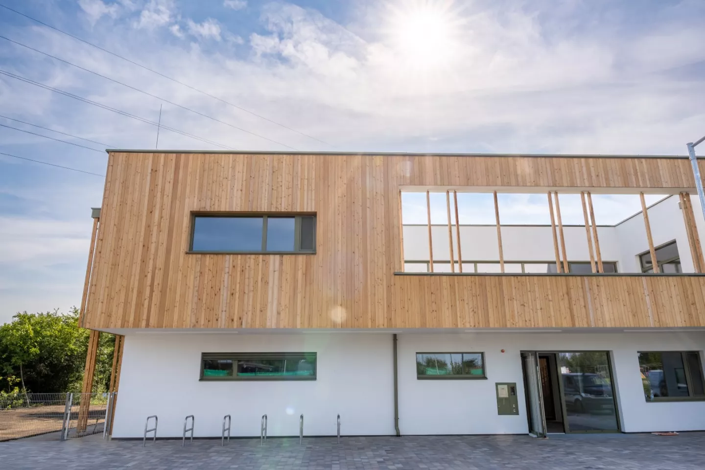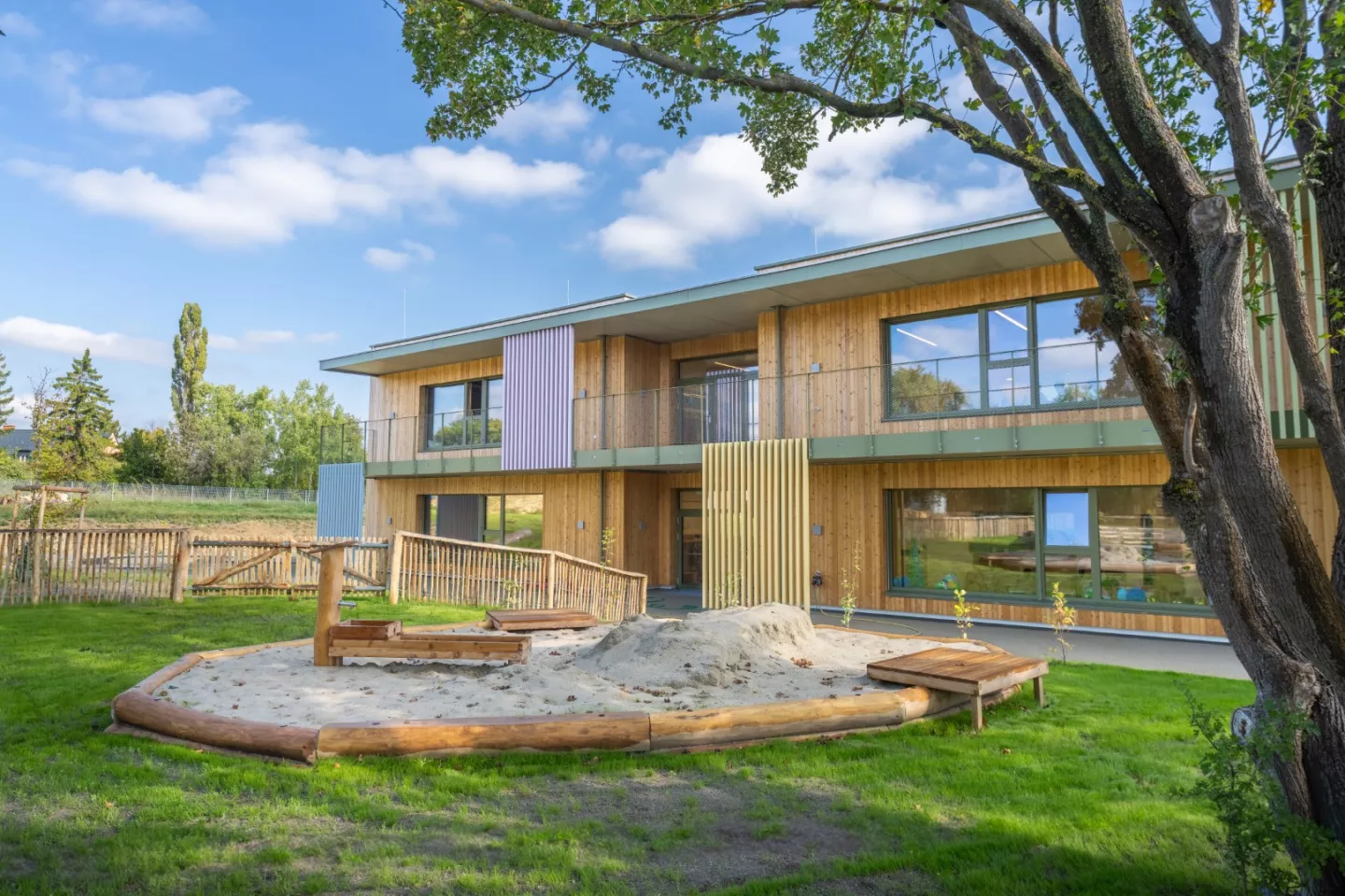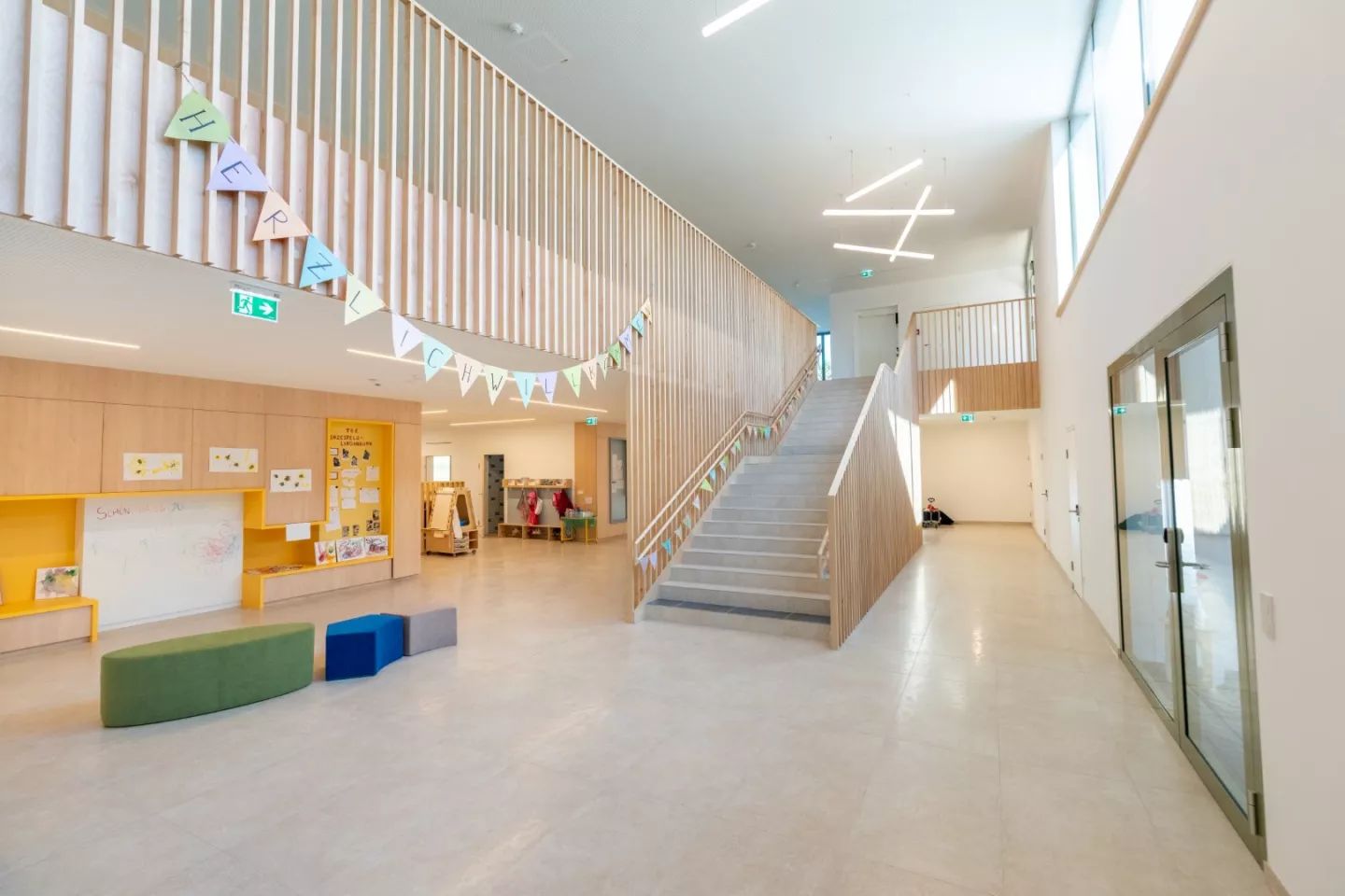 modernes und kindgerechtes Gebäude, das über die Mindestanforderungen