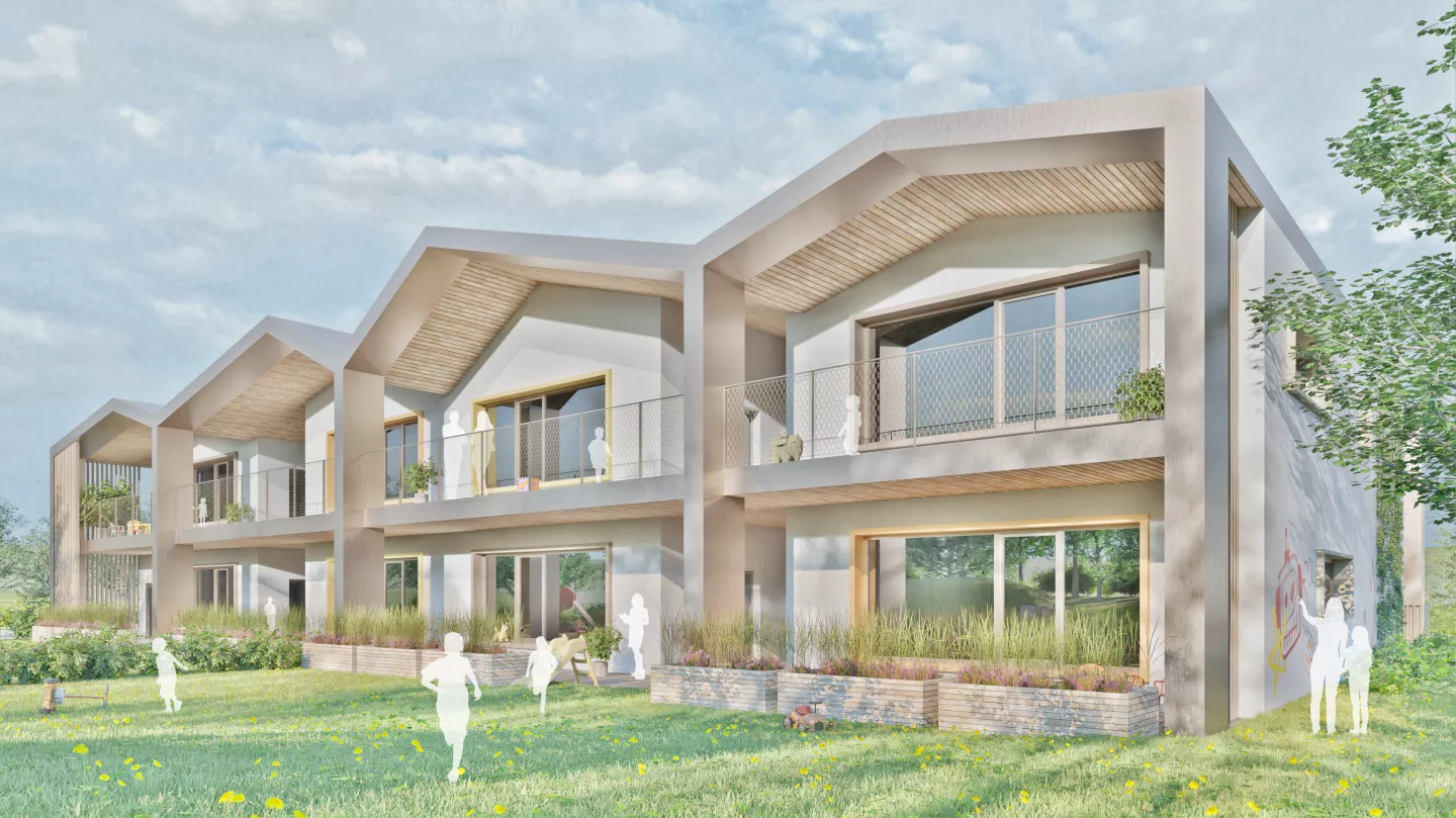 Zentraler Gedanke war die Schaffung eines geschützten, vielfältig nutzbaren Gartenraums als Herzstück des Projekts. Durch die geschickte Anordnung des Gebäudes entstehen großzügige Freiflächen, die den bestehenden Baumbestand respektieren und den Kindern hochwertige Spiel- und Aufenthaltsbereiche bieten.