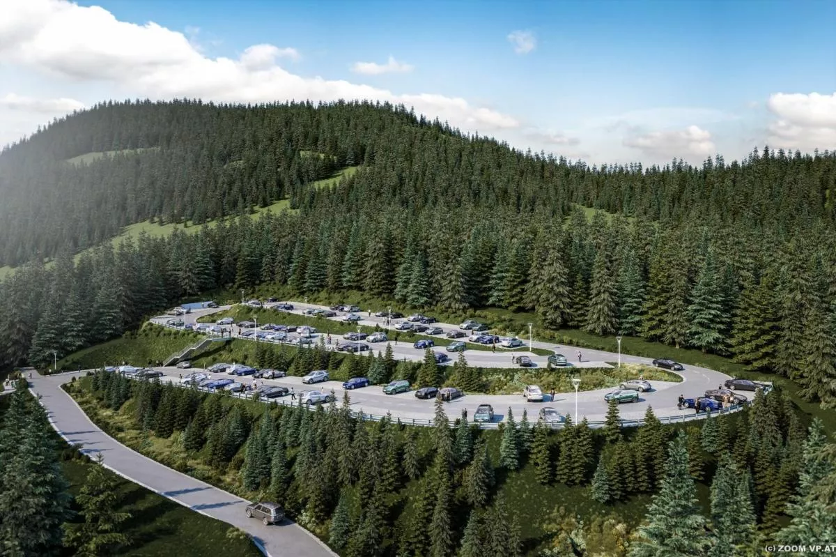 Die Errichtung einer neuen Stellplatzanlage mit drei Etagen auf ca. 12.000 m² Waldfläche in Hanglage inklusive zugehörigem Entwässerungsprojekt. Weiters wurde die öffentliche Straße im Bereich der Parkplatzanlage verbreitert und eine neue Anbindung an die Pistenanlage hergestellt.