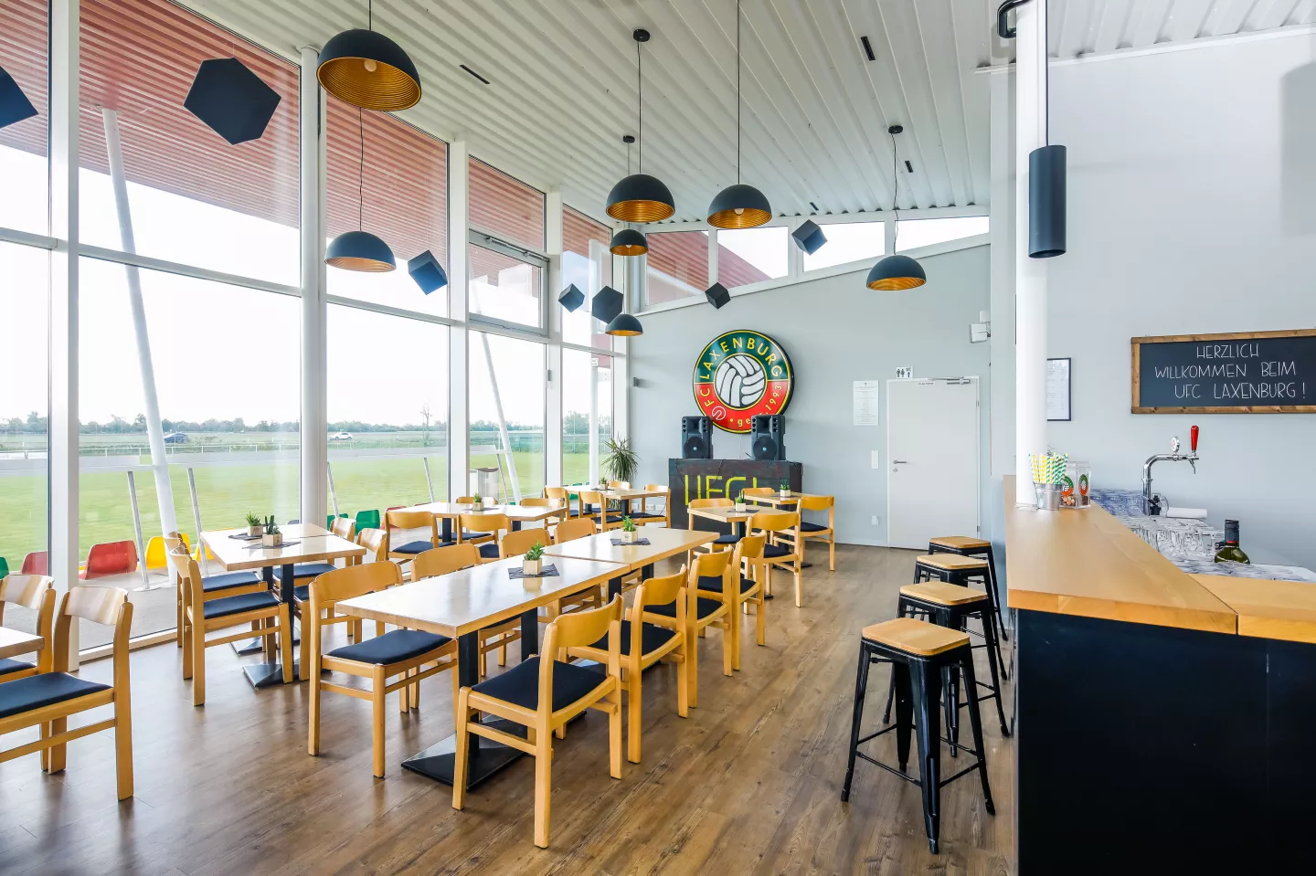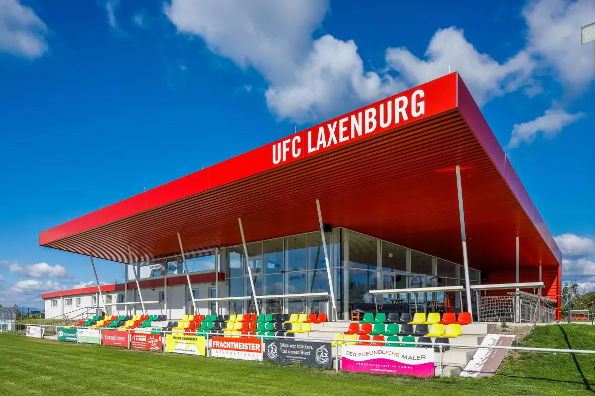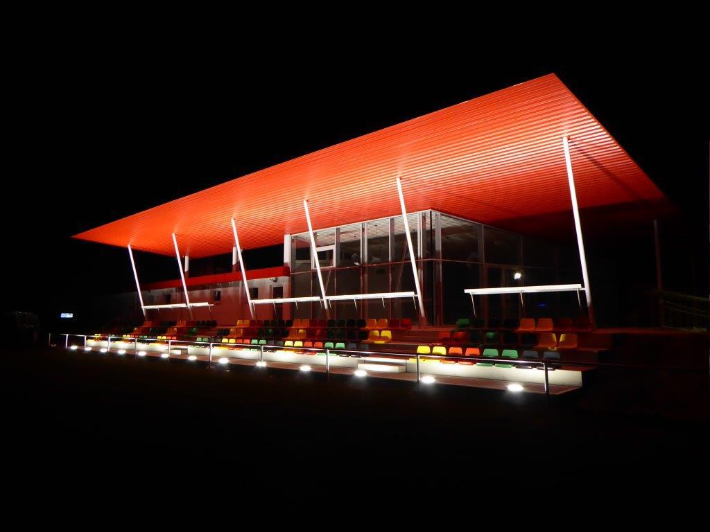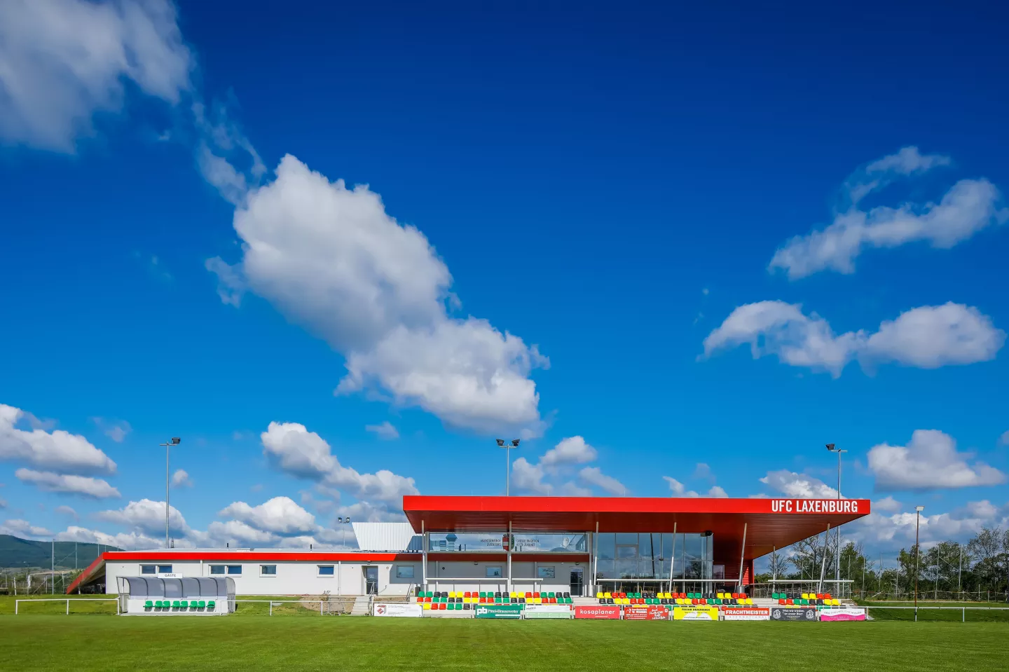 Das Vereinsgebäude umfasst 6 Umkleidekabinen, Sanitärraum für Sportler und Besucher, eine Kantine mit Aufwärmküche, Nebenräume und dieTribüne. Die Kassa und der Geräteraum wurden in Nebengebäuden errichtet.
