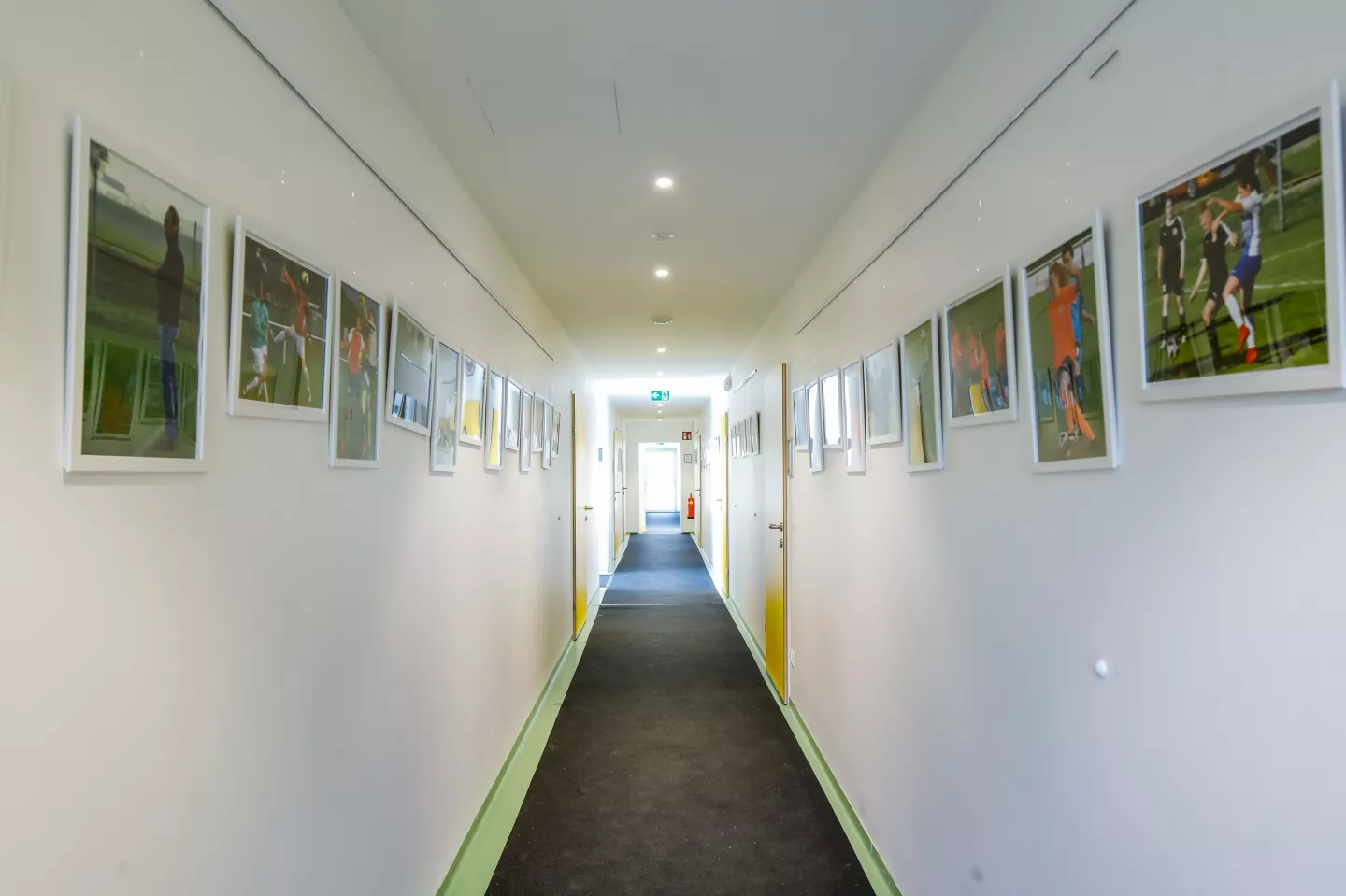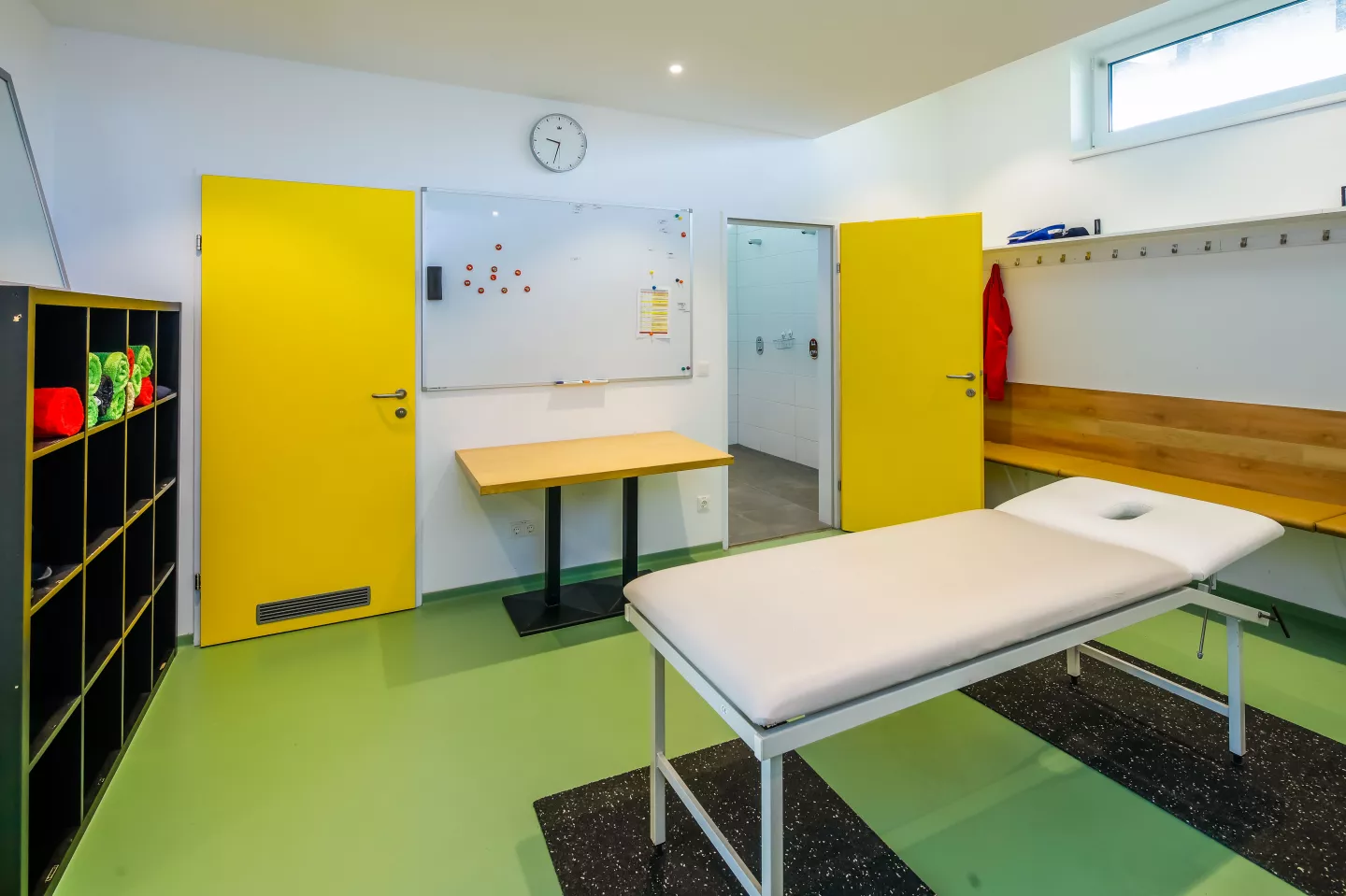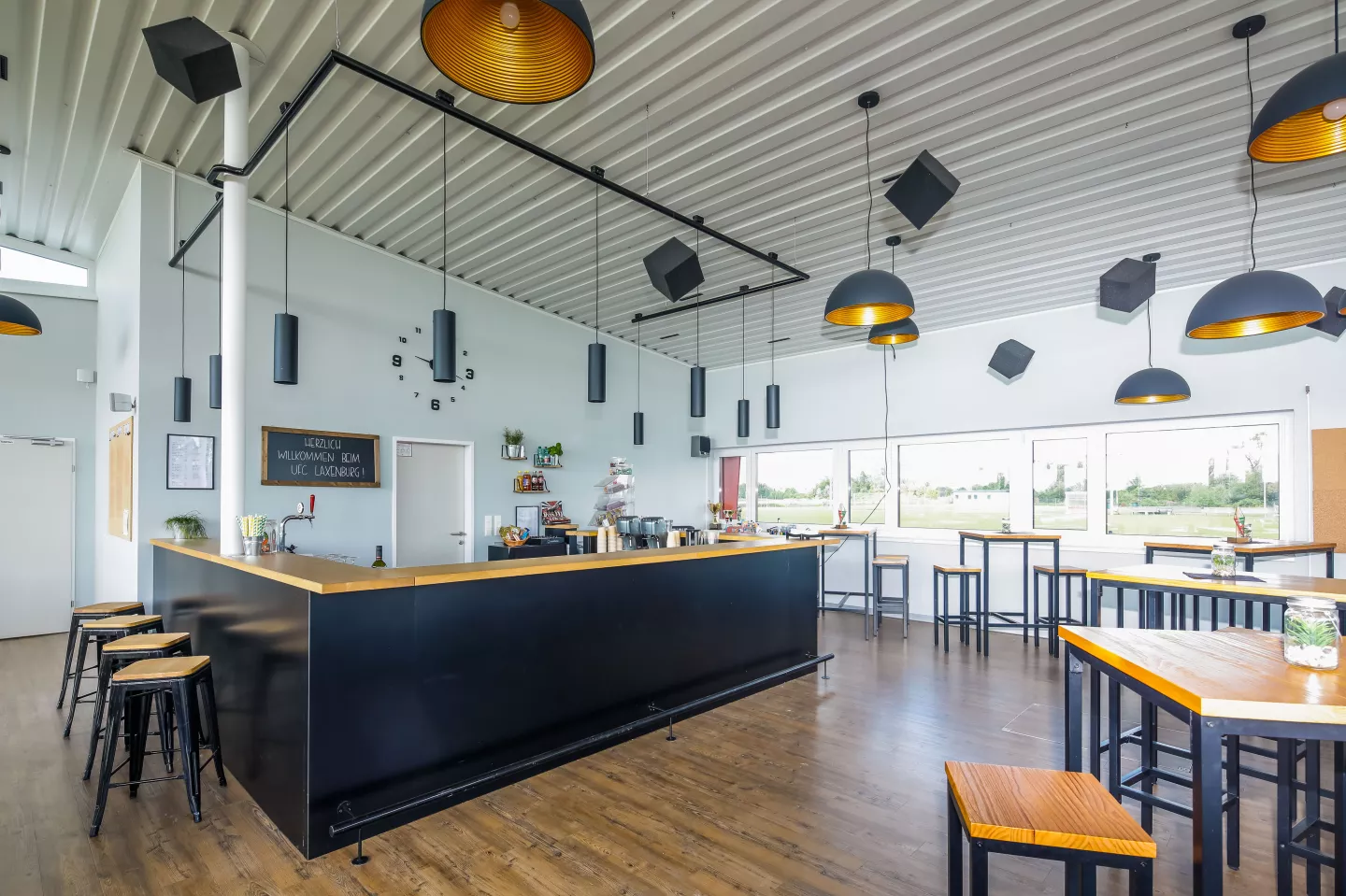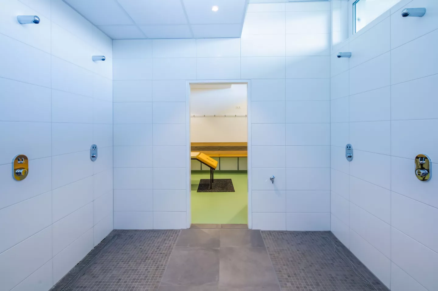 Das Vereinsgebäude umfasst 6 Umkleidekabinen, Sanitärraum für Sportler und Besucher, eine Kantine mit Aufwärmküche, Nebenräume und dieTribüne. Die Kassa und der Geräteraum wurden in Nebengebäuden errichtet.